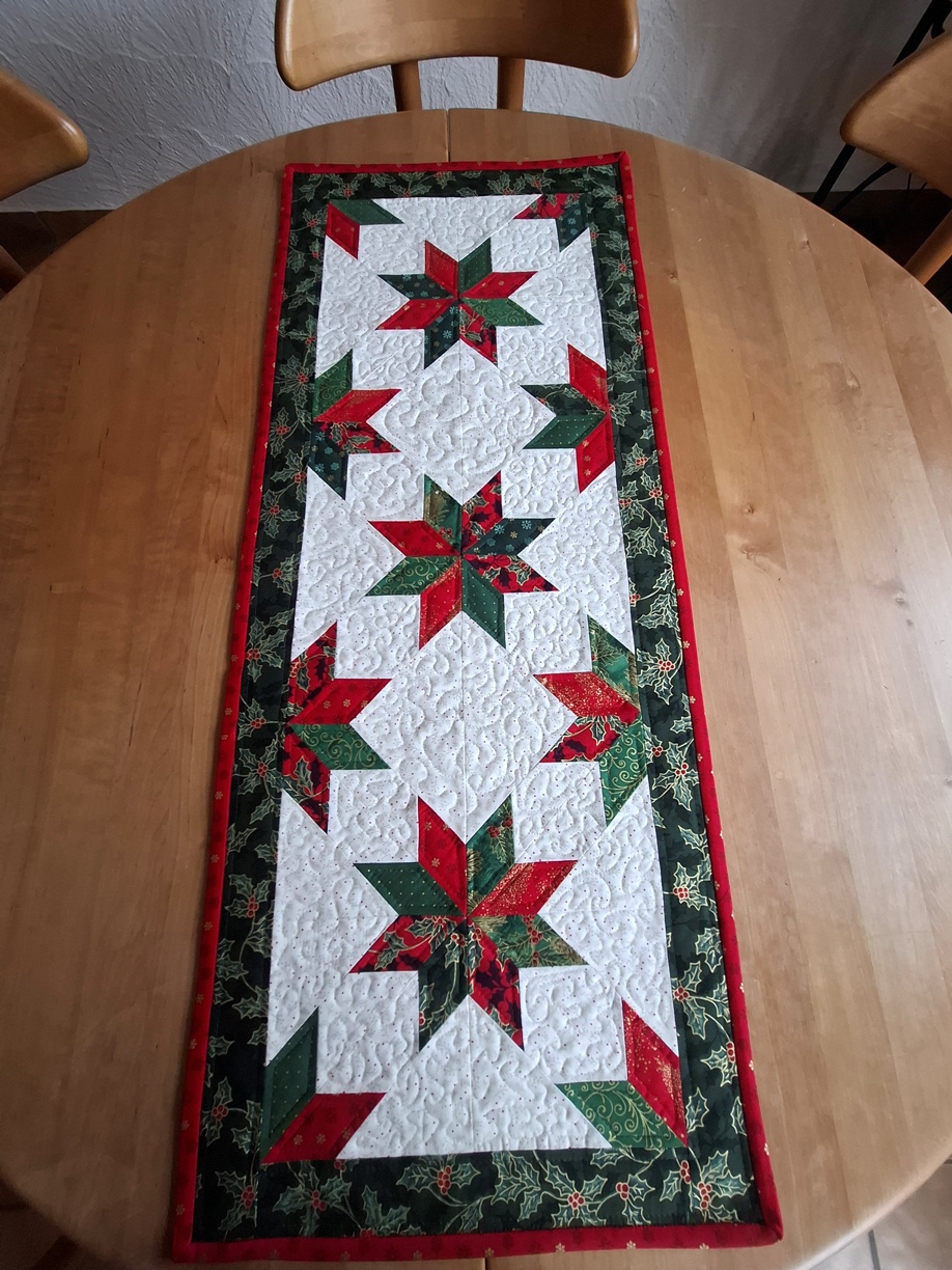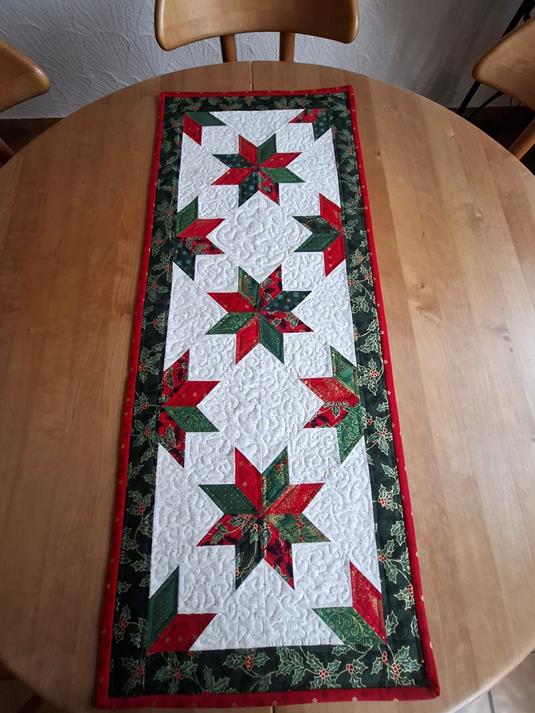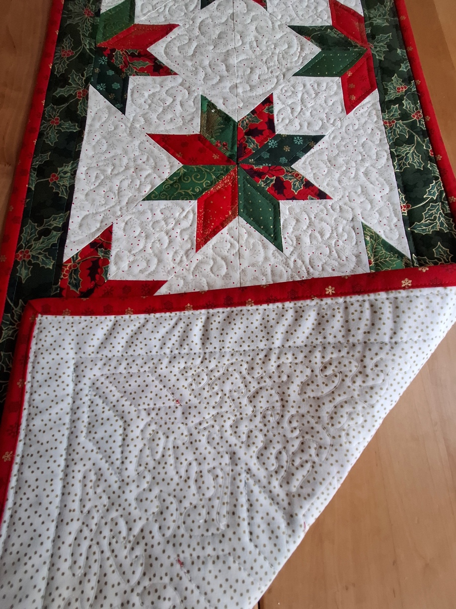 gefüttert mit 3 mm Bügelvlies, teilweise in den Sternen sowie im Mäandermuster gequiltet